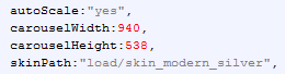 - skinPath:"load/skin_modern_silver" - this is the path to the skin graphics folder of the carousel.