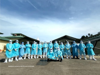 Healthcare workers in full PPE prior to shift duty 35