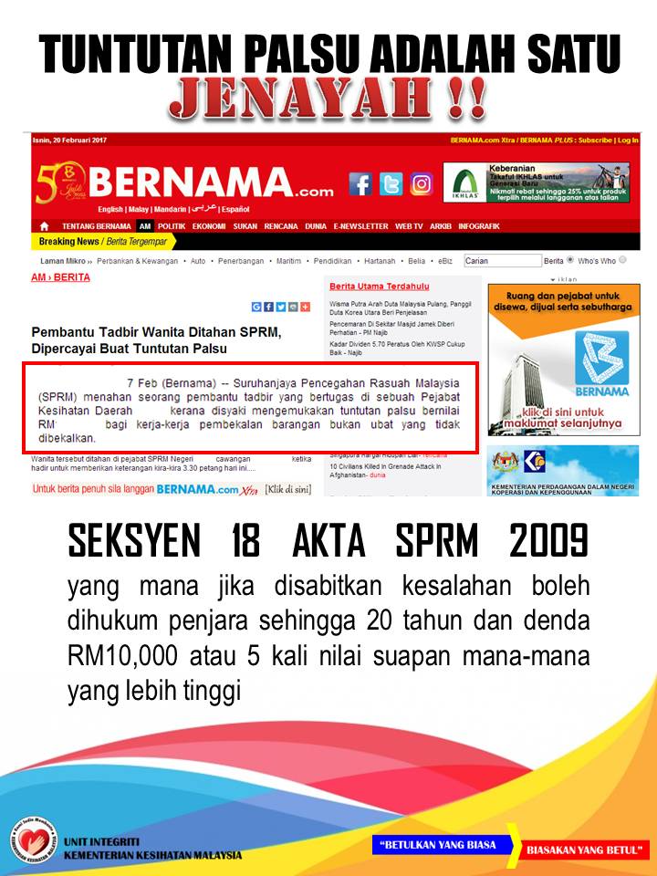 | 11. | Tuntutan Palsu | 07 Ogos 2014 01 Julai 2015 09 Jun 2015 27 Mei 2016 27 Oct 2016 22 Feb 2017 |
