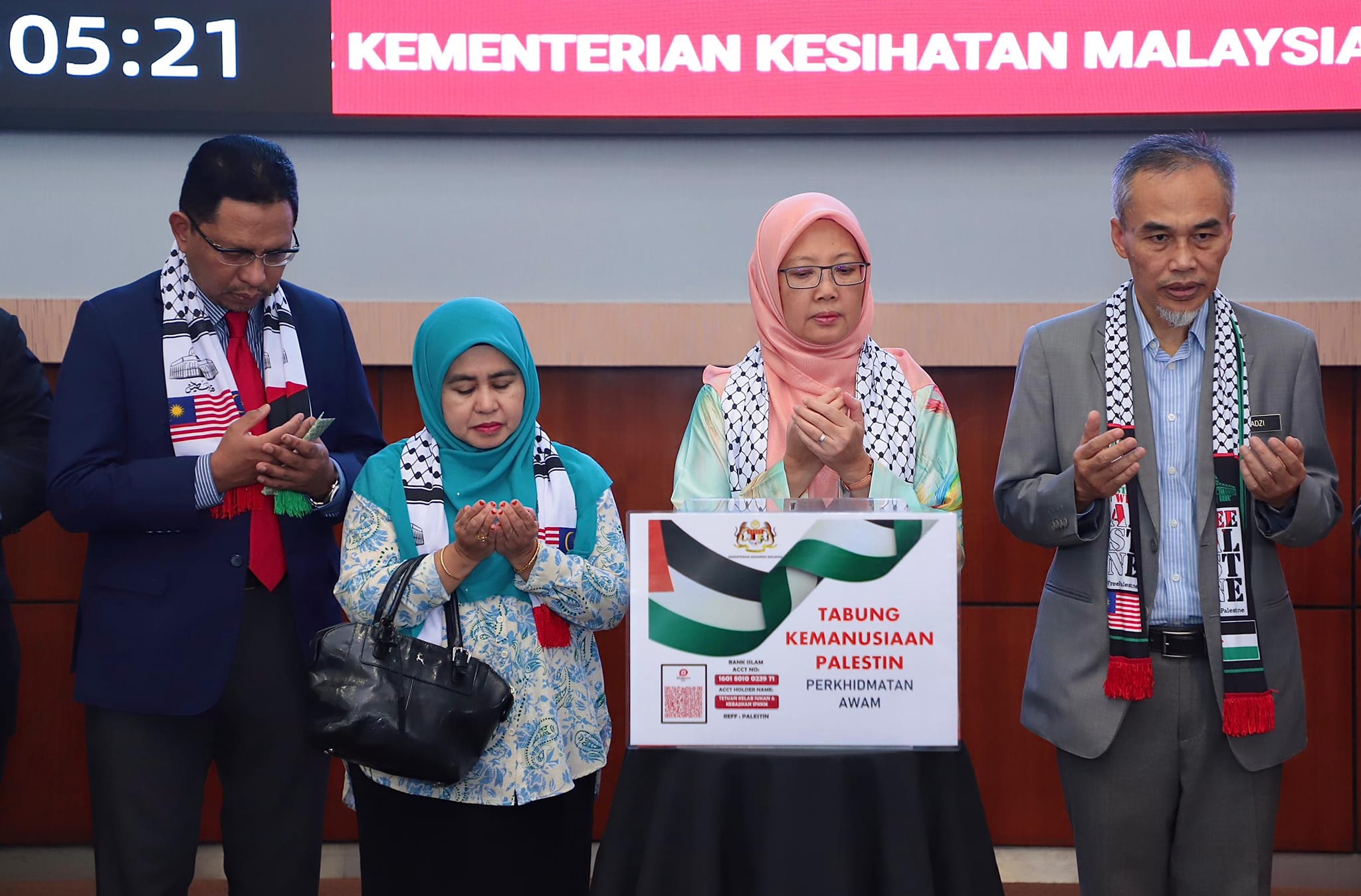 3 November 2023 – Pelancaran Tabung Kemanusiaan Palestin Perkhidmatan Awam, Kementerian Kesihatan Malaysia telah disempurnakan oleh YB Dr. Zaliha Mustafa, Menteri Kesihatan di Ibu Pejabat KKM.