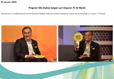 01 Januari 2019: Program Sila Duduk Jangan Lari Anjuran TV Al Hijrah YB Datuk Seri Dr. Dzulkefly Ahmad, Menteri Kesihatan Malaysia telah secara santai menjayakan Program Sila Duduk Jangan Lari anjuran TV Al Hijrah
