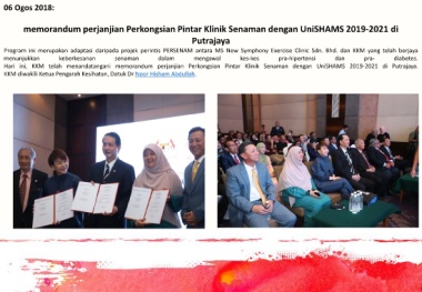 Hari ini, KKM telah menandatangani memorandum perjanjian Perkongsian Pintar Klinik Senaman dengan UniSHAMS 2019-2021 di Putrajaya.