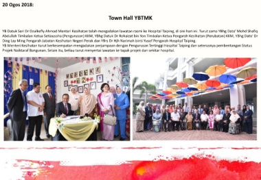 YB Menteri Kesihatan turut berkesempatan mengadakan perjumpaan dengan Pengurusan Tertinggi Hospital Taiping dan seterusnya pembentangan Status