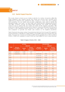 and the projection of the dentist’s supply based on the baseline data from the year 2016 until