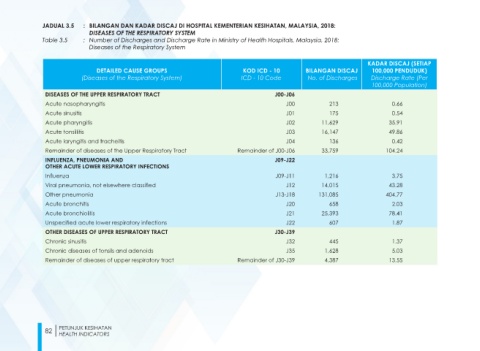 Table 3.5 : Number of Discharges and Discharge Rate in Ministry of Health Hospitals, Malaysia, 2018: