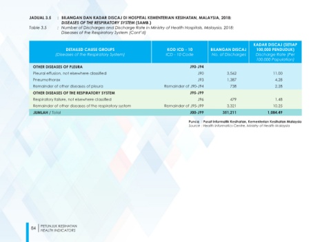 JADUAL 3.5 : BILANGAN DAN KADAR DISCAJ DI HOSPITAL KEMENTERIAN KESIHATAN, MALAYSIA, 2018: