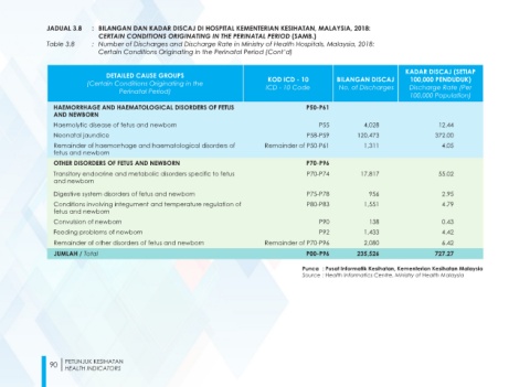 JADUAL 3.8 : BILANGAN DAN KADAR DISCAJ DI HOSPITAL KEMENTERIAN KESIHATAN, MALAYSIA, 2018: