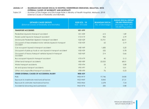 JADUAL 3.9 : BILANGAN DAN KADAR DISCAJ DI HOSPITAL KEMENTERIAN KESIHATAN, MALAYSIA, 2018: