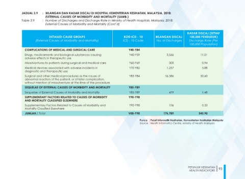 JADUAL 3.9 : BILANGAN DAN KADAR DISCAJ DI HOSPITAL KEMENTERIAN KESIHATAN, MALAYSIA, 2018: