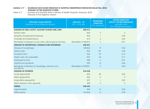 Table 3.17 : Number and Mortality Rate in Ministry of Health Hospitals, Malaysia, 2018: