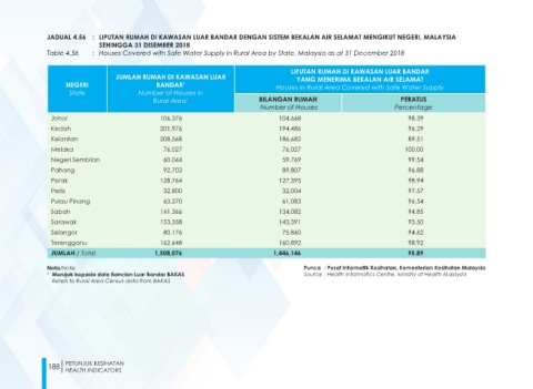 Table 4.56 : Houses Covered with Safe Water Supply in Rural Area by State, Malaysia as at 31 December 2018