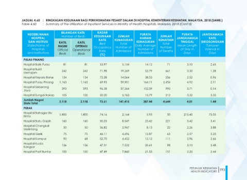 Table 4.60 : Summary of the Utilization of Inpatient Services in Ministry of Health Hospitals, Malaysia, 2018 (Cont’d)