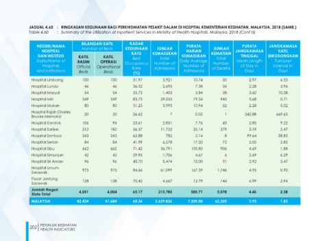 JADUAL 4.60 : RINGKASAN KEGUNAAN BAGI PERKHIDMATAN PESAKIT DALAM DI HOSPITAL KEMENTERIAN KESIHATAN, MALAYSIA, 2018 (SAMB.)