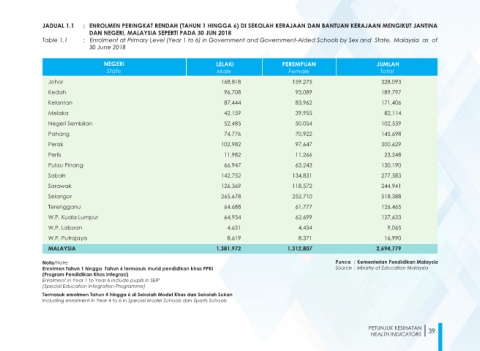Enrolmen Tahun 1 hingga  Tahun 6 termasuk murid pendidikan khas PPKI                      Source  : Ministry of Education Malaysia