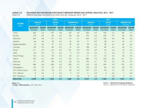 JADUAL 2.2 : KELAHIRAN MATI (BILANGAN DAN KADAR*) MENGIKUT NEGERI DAN JANTINA, MALAYSIA, 2016 - 2017