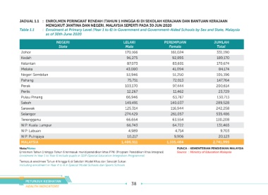 JADUAL 1.1 : ENROLMEN PERINGKAT RENDAH (TAHUN 1 HINGGA 6) DI SEKOLAH KERAJAAN DAN BANTUAN KERAJAAN