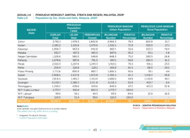 JADUAL 1.6 : PENDUDUK MENGIKUT JANTINA, STRATA DAN NEGERI, MALAYSIA, 2020 e