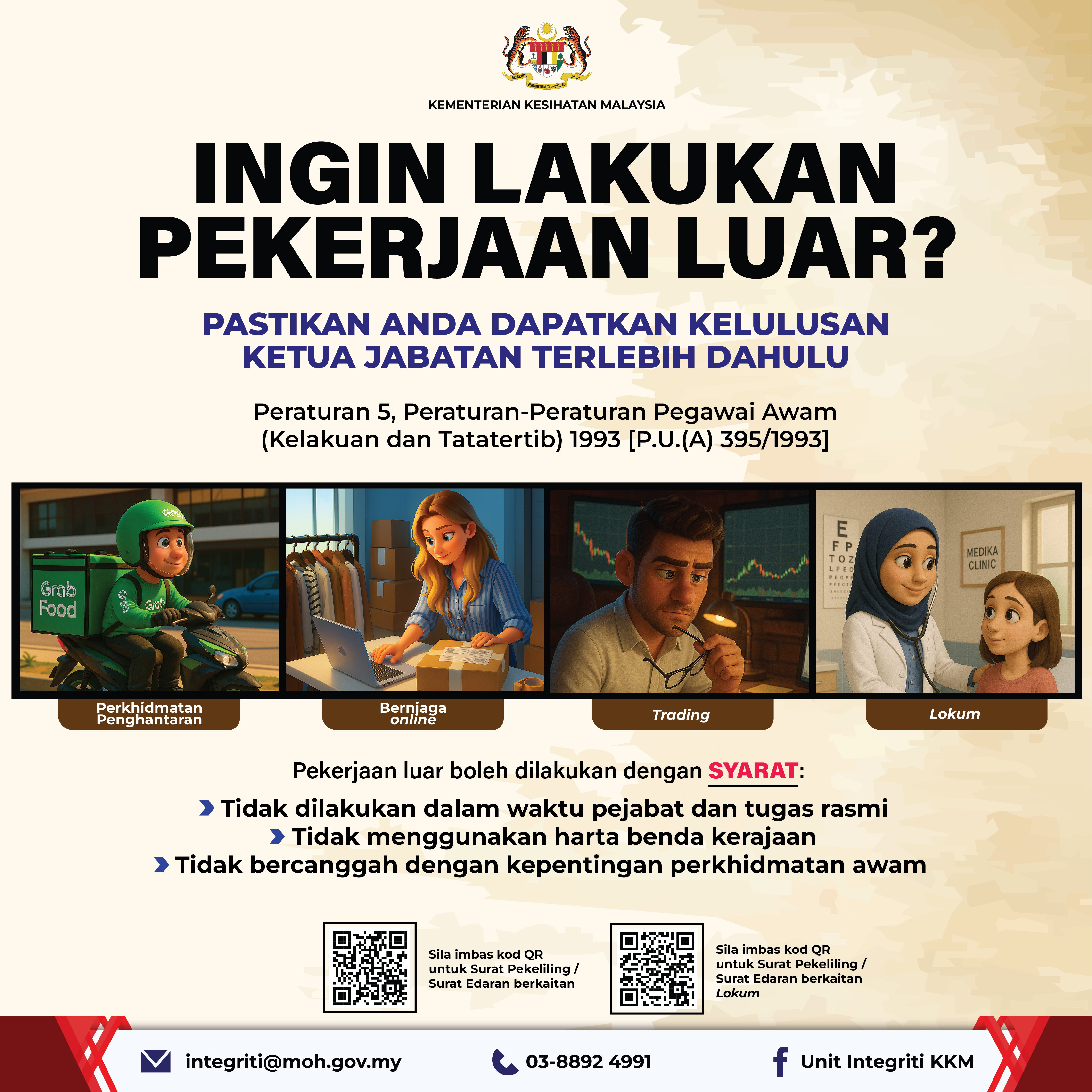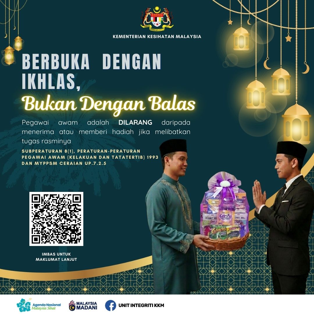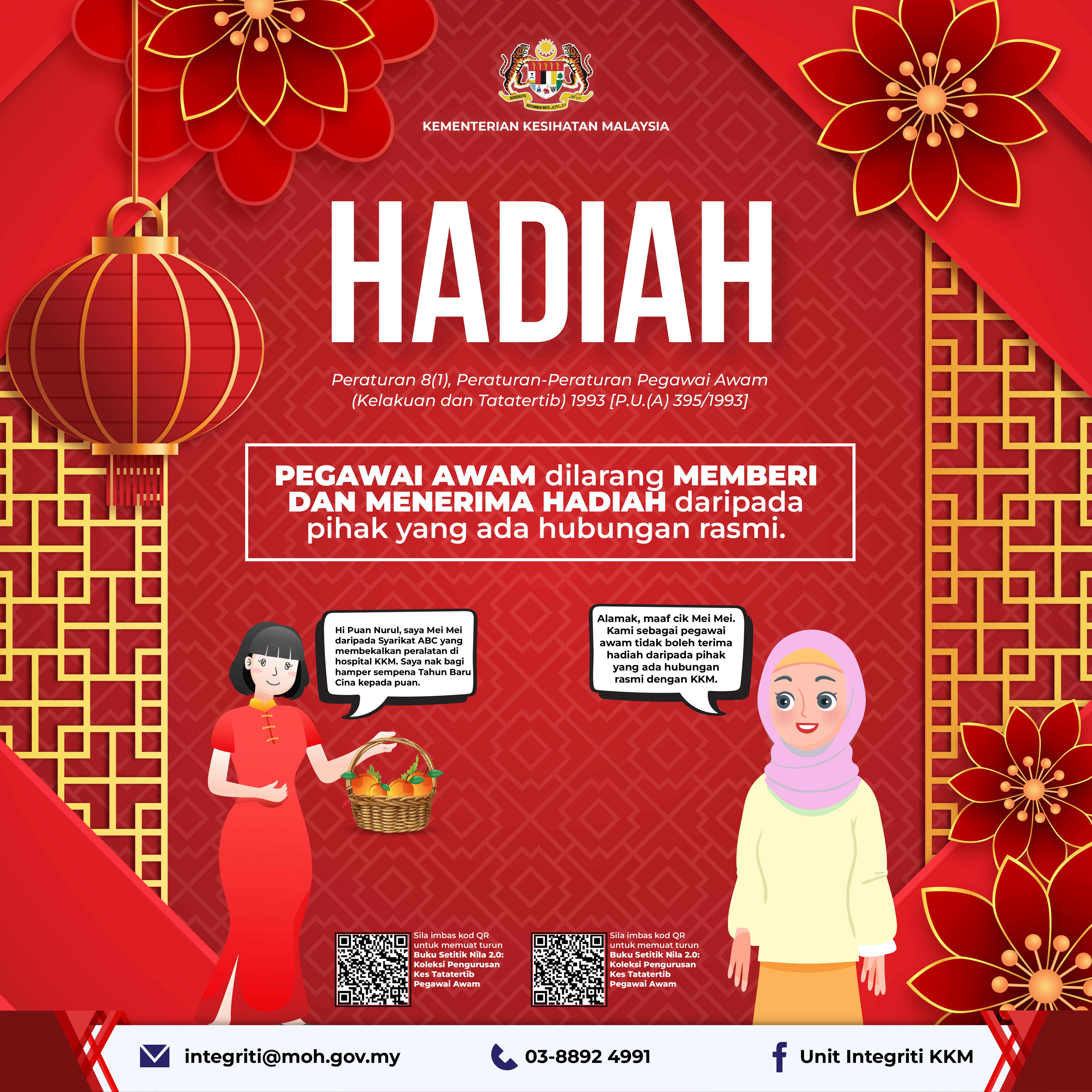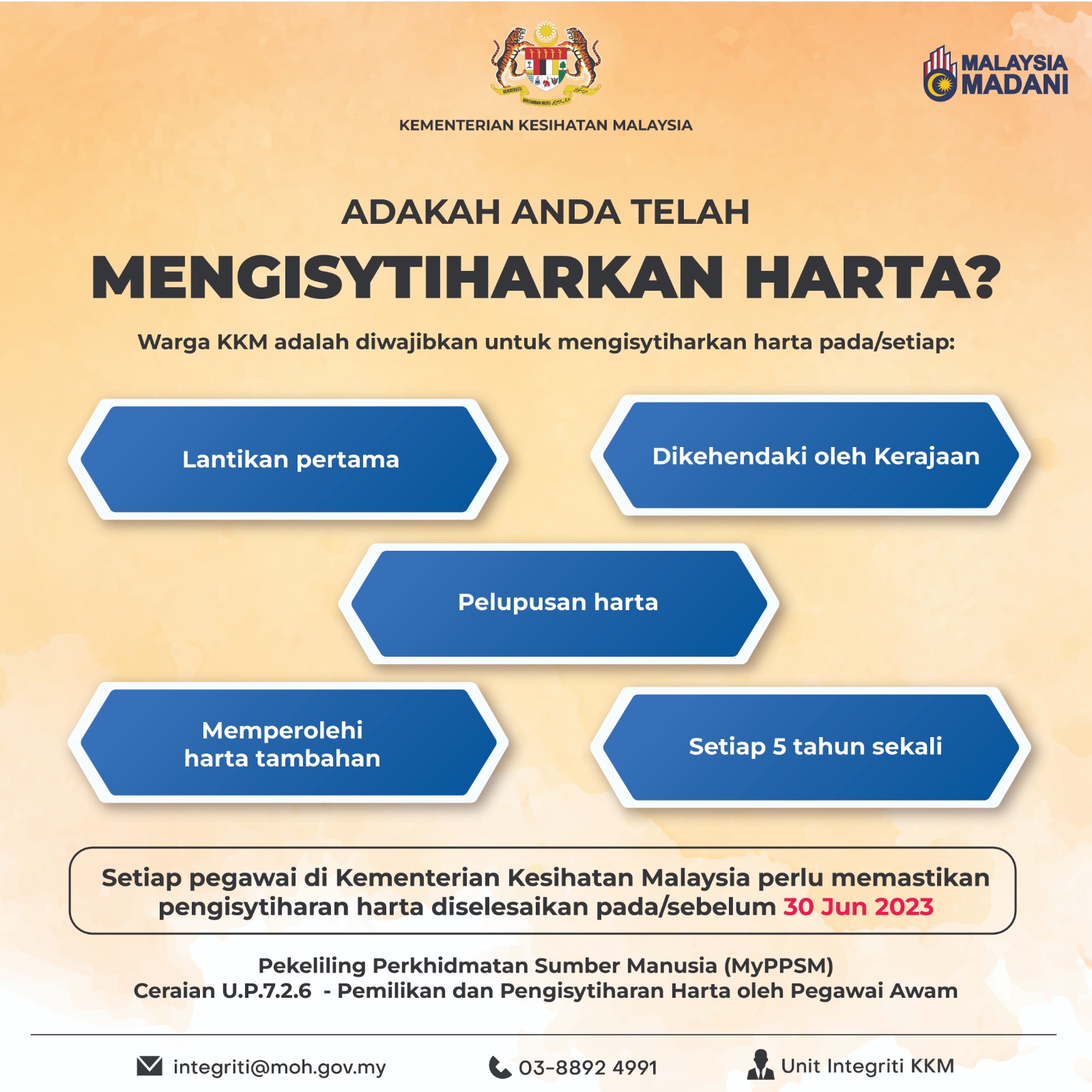 Sistem Pengurusan AntiRasuah atau Anti-Bribery Management System (ABMS) telah mula dilaksanakan di Kementerian Kesihatan Malaysia sejak tahun 2019 bagi mencapai matlamat “Toleransi Sifar Terhadap Rasuah” serta bagi membudayakan nilai-nilai integriti yang tinggi di kalangan warga kerja KKM. Berdasarkan pematuhan terhadap piawaian standard MS ISO 37001:2016 ABMS yang terkini, pensijilan MS ISO 37001:2016 ABMS Kementerian telah disambung bagi tempoh 15 Jun 2025 hingga 25 Jun 2028 dengan empat (4) skop yang berikut: