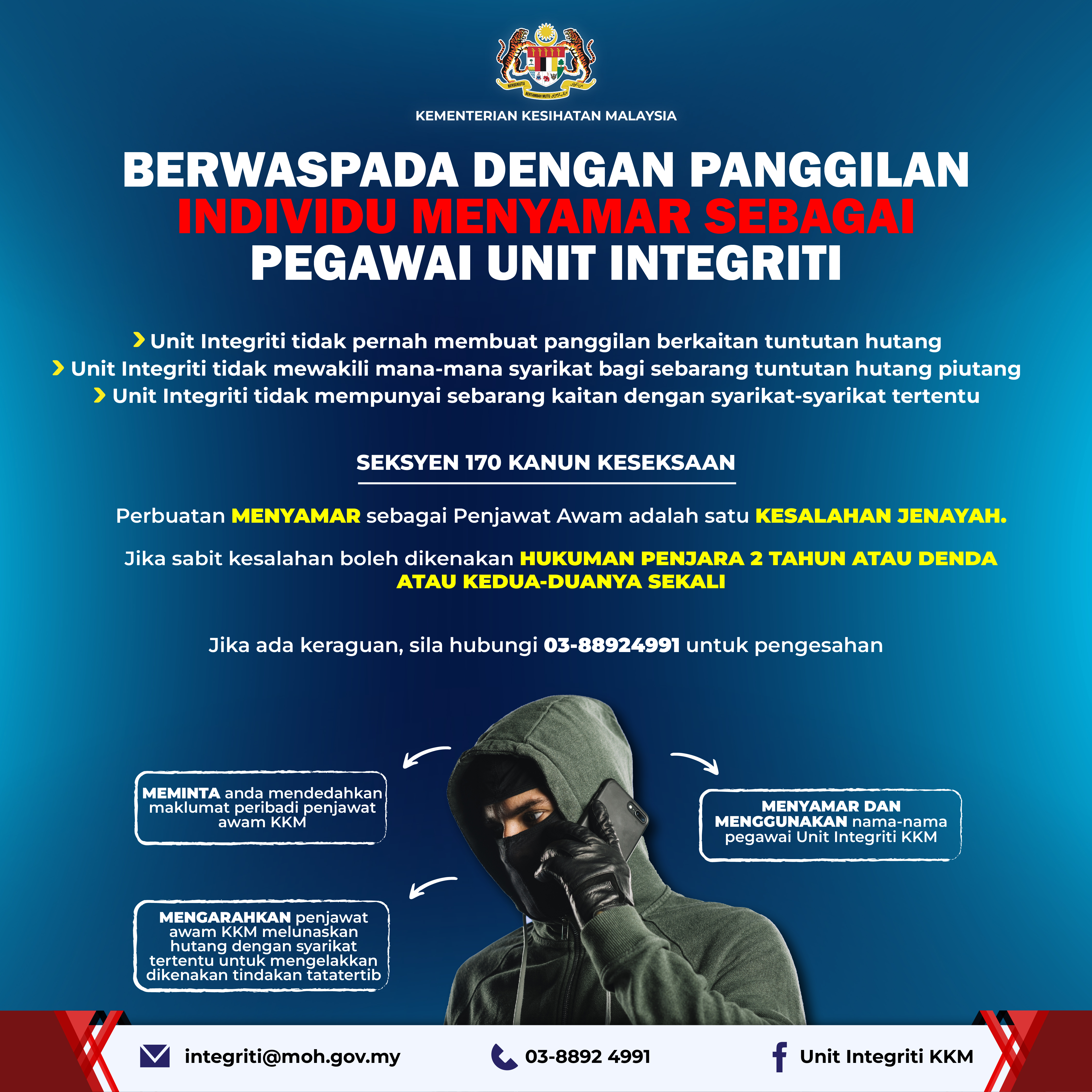 Sebarang pertanyaan dan pelaporan boleh dikemukakan kepada: